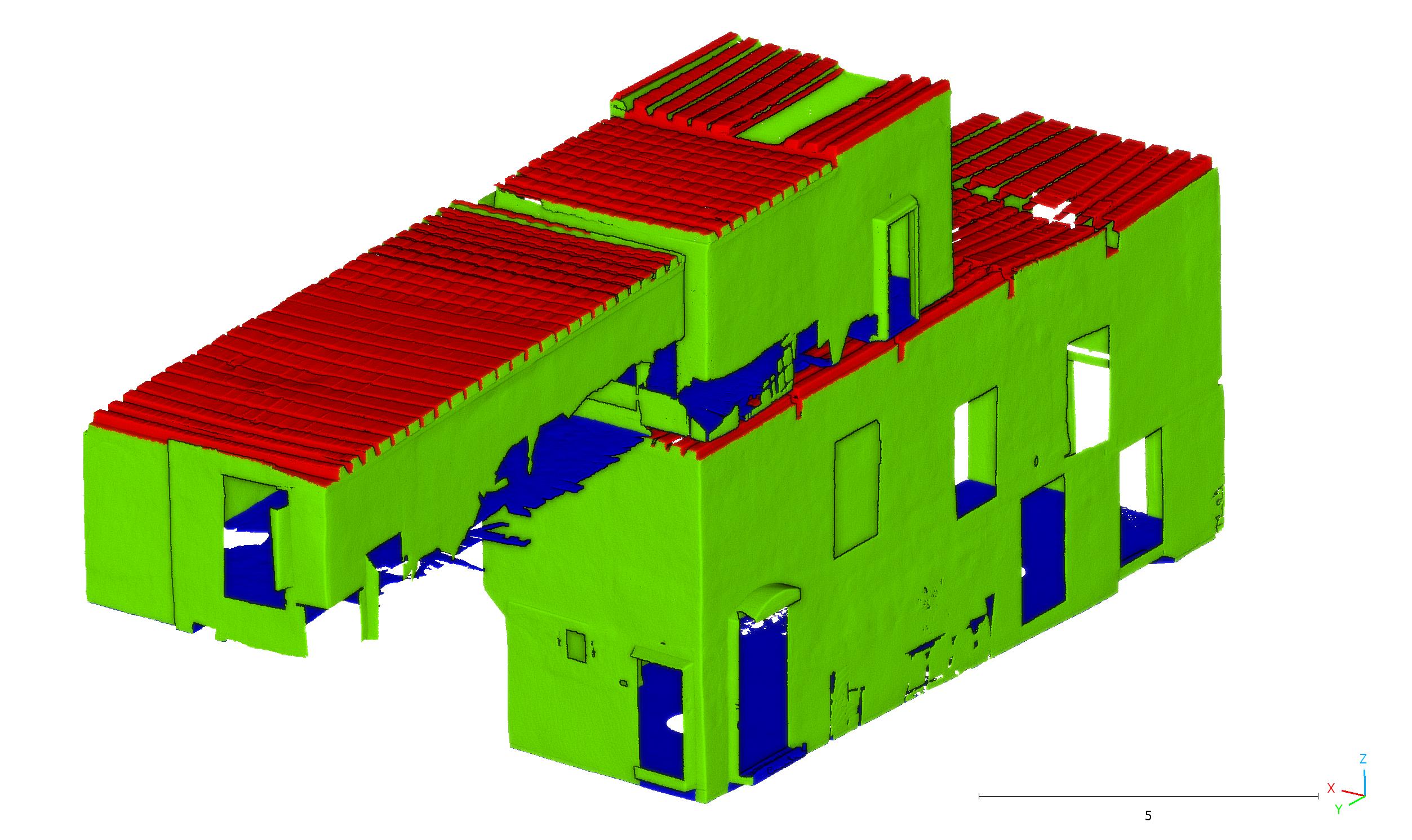 La metodología desarrollada emplea el algoritmo de Machine Learning Random Forest para clasificar los diferentes sistemas constructivos de la nube de puntos 3D a partir de sus características geométricas. En este caso, su segmentación permite extraer la base de las viguetas de los forjados de madera para calcular automáticamente la flecha de cada vigueta. Este método ha sido aplicado en parte de los forjados de madera del Convento de Gracia en Ávila, deparando resultados realmente prometedores tal y como pueden verse en las imágenes de abajo.